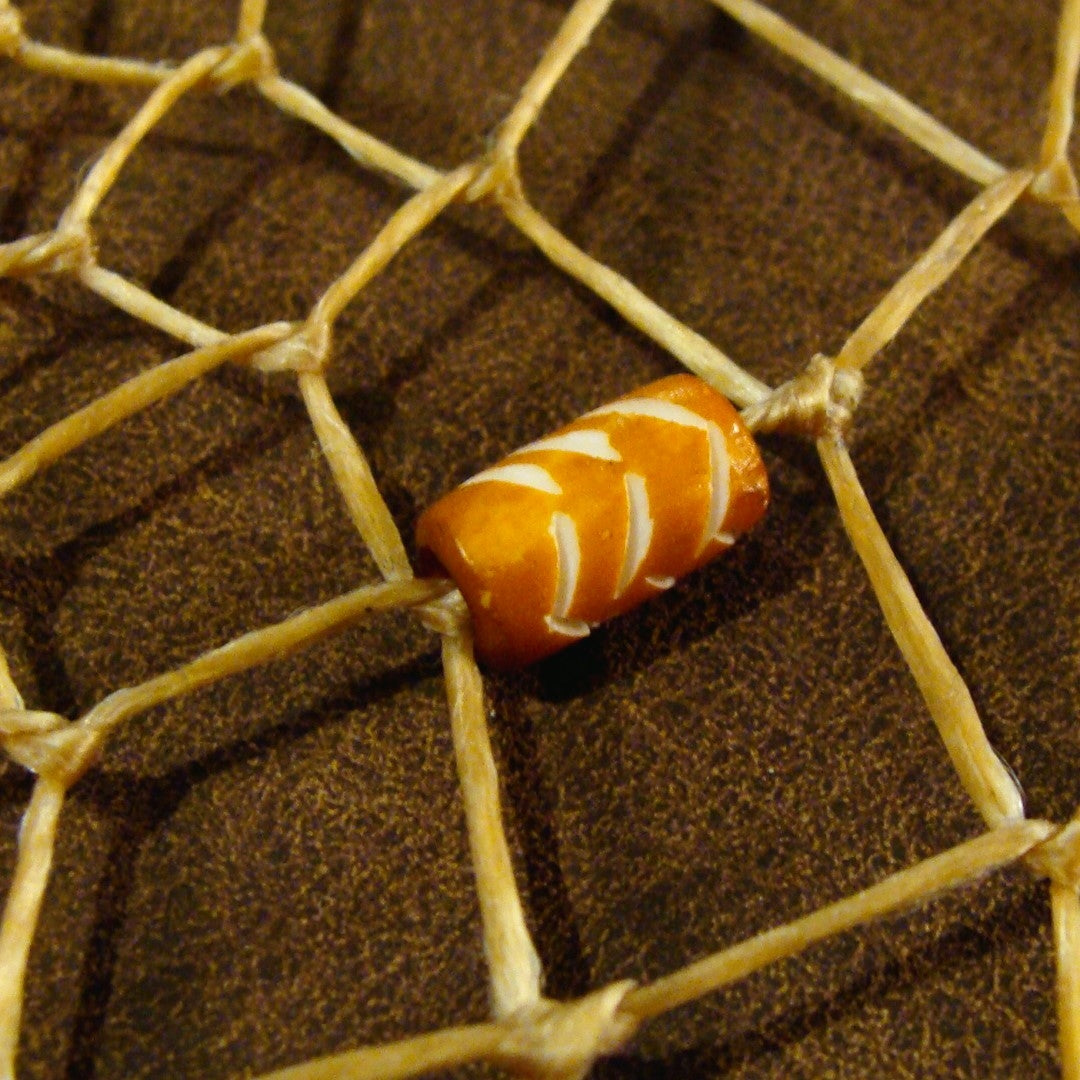 All our dreamcatchers are handwoven. They are framed using real willow sticks and sewn with sinew. This Dream-Catcher measures approximately 8.50" across at the widest point and 13" long. It has one traditional hand carved bone bead and a sinew strap for hanging.